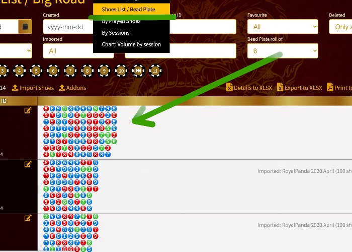 You can adjust number of hands in column by changing "Bead Plate rolls of" value. This will help you to analyze dynamics of the game.