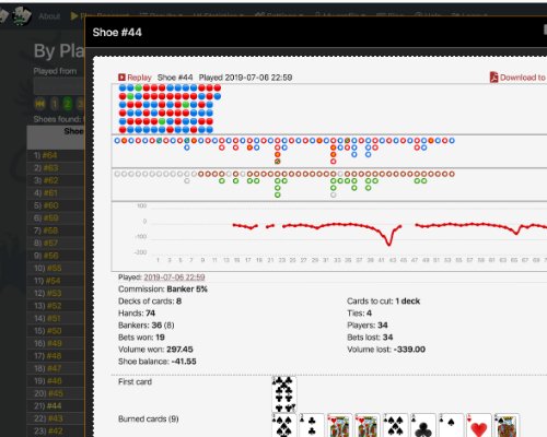 We are excited to introduce you this new platform with Baccarat simulator and testing engine. This powerful and unique tool will help you to improve your playing skills. It will provide you will all information and statistics that you need to play on a high level. Please find more information in Help section, watch Quick Start introduction - and try it, it's for free!